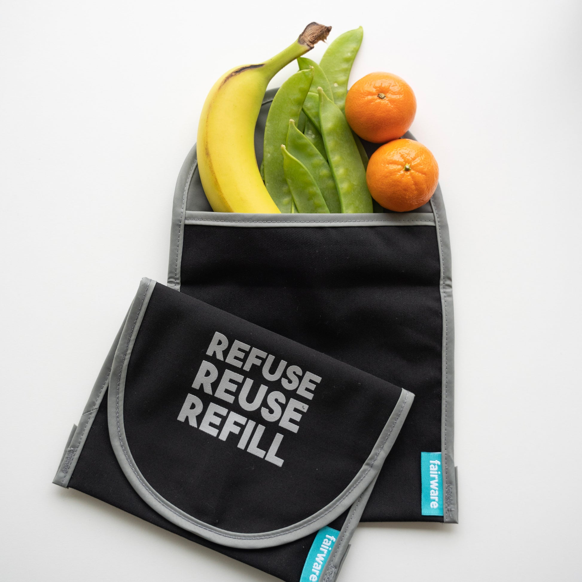 The Zero Waste reusable sandwich or snack bags have an EcoTwill exterior, made from a blend of recycled PET bottles and organic cotton. It features a nylon cloth interior and a hook and loop closure. These little bags are great for keeping sandwiches, chips, fruit and other food items fresh while you're on the go. Open size is 7.25" x 11.375".